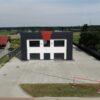 Obiekt 2-kondygnacyjny, wykonany w technologii murowo-żelbetowej. Ściany zewnętrzne budynku-warstwowe z pustaków ceramicznych ocieplone styropianem. Wysokość budynku: 8,60 m od poziomu terenu do najwyższej części elewacji. Szerokość budynku 15 m, długość budynku 48,95m. Powierzchnia działki ok 26 arów.